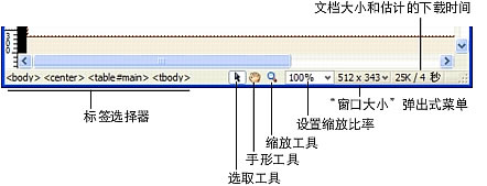 標(biāo)簽選擇器顯示環(huán)繞當(dāng)前選定內(nèi)容的標(biāo)簽的層次結(jié)構(gòu)。單擊該層次結(jié)構(gòu)中的任何標(biāo)簽以選擇該標(biāo)簽及其全部內(nèi)容。單擊 可以選擇文檔的整個正文。若要設(shè)置標(biāo)簽選擇器中某個標(biāo)簽的 class 或 id 屬性,請右鍵單擊 (Windows) 或按住 Control 鍵并單擊 (Macintosh) 該標(biāo)簽,然后從上下文菜單中選擇一個類或 ID。標(biāo)簽選擇器是選擇標(biāo)簽的首選方法,因為它可以確保您始終準(zhǔn)確地選擇標(biāo)簽。手形工具使您可以單擊文檔并將其拖入"文檔"窗口。單擊"選擇"工具可禁用手形工具。"縮放"工具和"設(shè)置縮放比率"彈出式菜單可以讓您為文檔設(shè)置縮放比率。"窗口大小"彈出式菜單(僅在"設(shè)計"視圖中可見)用來將"文檔"窗口的大小調(diào)整到預(yù)定義或自定義的尺寸。"窗口大出式菜單的右側(cè)是頁面(包括全部相關(guān)的文件,如圖像和其它媒體文件)的文檔大小和估計下載時間。